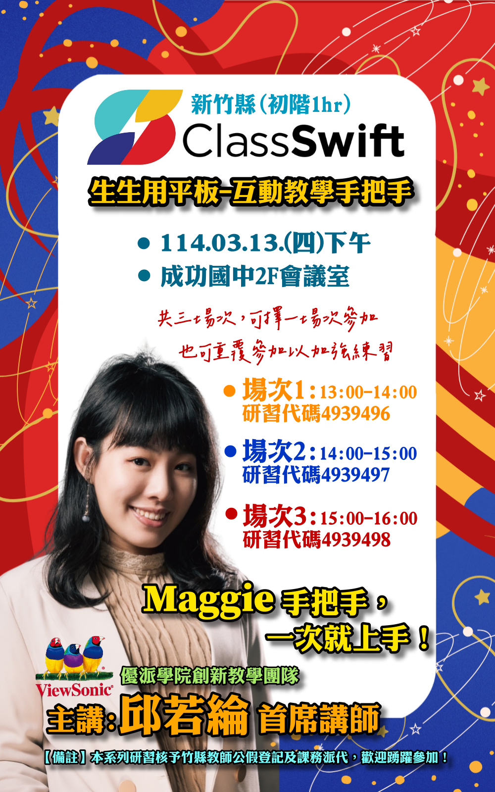 備註:ClassSwift「基本版」為免費使用,可安裝於教室大屏或教師電腦使用。「進階版」增加AI功能,為本縣113年度數位學習精進方案-校園數位內容與教學軟體採購案之統購軟體。